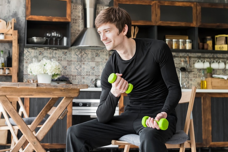 Домашняя перекладина для подтягиваний легко устанавливается в дверной проем. Сгибания рук со штангой также полезны, улучшая работоспособность тела во время тренировок.