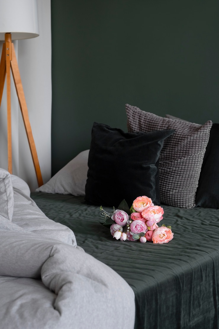 Если нравится контраст в спальне, но оттенки кажутся резкими, используйте близкие цвета, передающие то же ощущение. Например, темно-морской с бледно-кремовым или шиферно-серый с серебристо-белым цветом стен. Преимущественно серая спальня может стать спокойным фоном для более смелых черно-белых элементов.
