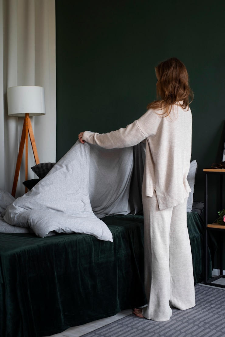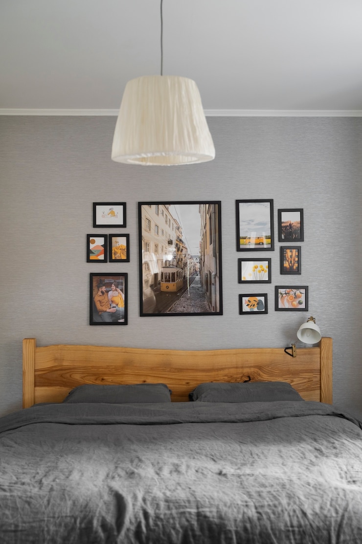 Используйте теплое фланелевое постельное белье серого цвета, черно-белые фотографии, установите деревянный пол с серыми пятнами. Рассмотрите возможность использования серого только с черным или только с белым вместо двух базовых цветов сразу.