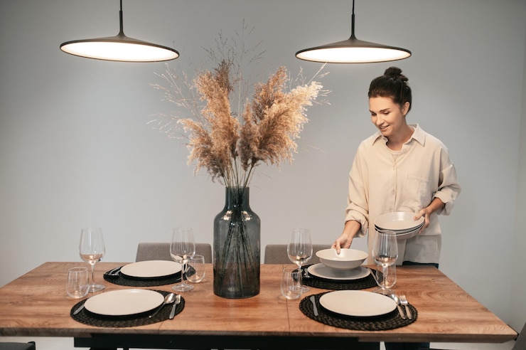 Настенные бра — часто незамеченное решение для освещения столовой. Их можно использовать для освещения темных углов комнаты и придать ей теплый, привлекательный оттенок. Настольное освещение — важный элемент, который нужно учесть при планировании схемы освещения столовой.