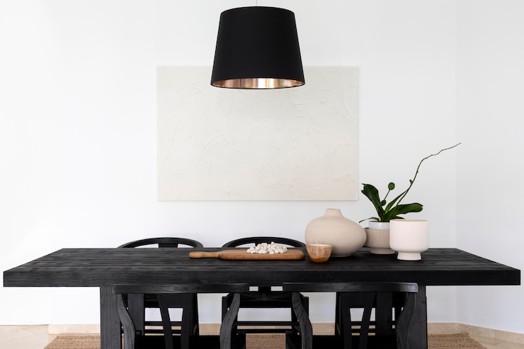 Потолочные светильники крепятся к потолку или на нём. От встроенных ламп до светильников скрытого монтажа каждый вариант даёт свет, не вызывая повышенного внимания. Встроенные светильники — один из самых простых видов освещения столовой и хорошо работают, когда нужно сконцентрировать свет в определённой части комнаты.