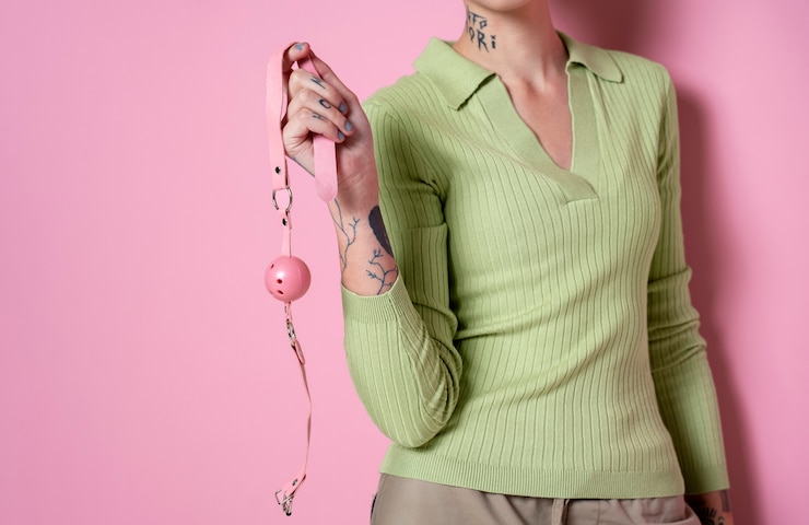 Использование банальностей для иронического переосмысления — одна из характерных черт Леди. Не удивительно, что она выделяет как аксессуар то, что обычно остается скрытым: средство защиты от дискомфорта при ношении новой или неудобной обуви. Идея заключается в том, чтобы переобуться в легкие сандалии из альпинистских веревок, которые оставляют открытыми маленькие разноцветные бандажи.
