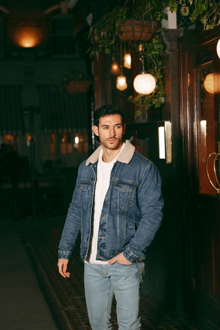 Попробуйте надеть полосатую голубую рубашку с джинсами средней стирки и темно-синей курткой, или соедините чёрное с разными оттенками серого.