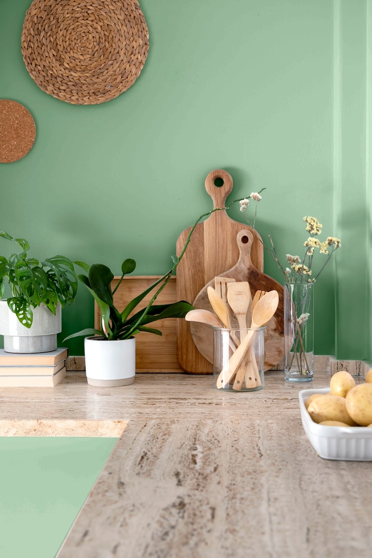 Принты с растительными мотивами придадут кухне деревенский шарм. Выберите модернизированный текстиль или принты в желаемых тонах. Добавьте сдержанные цветочные узоры на плитке, посуде, полотенцах и подушках.