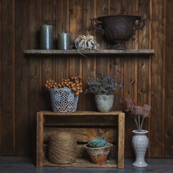 Идеи деревенского стиля заимствованы из традиционного кантри. Для создания теплой и уютной атмосферы применяйте различные натуральные текстуры и текстиль. Традиционный кантри дизайн основан на цветовой палитре, повторяющей элементы природы, характерные для сельской местности: теплые коричневые и серые тона, успокаивающие зеленые и голубые, а также нейтральные бежевые или белые оттенки.
