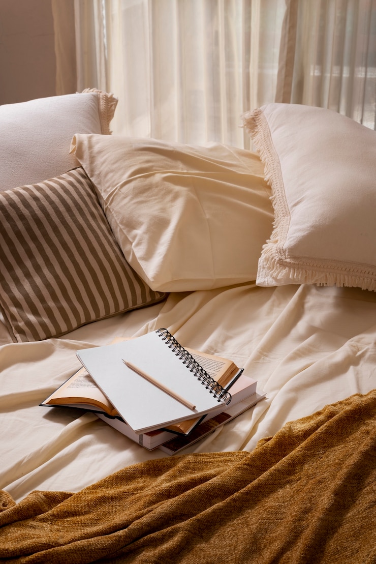 Не экономьте при выборе постельного белья. Чем выше плотность тканей, тем приятнее он прикасается к коже. Предпочтите белье из египетского хлопка или органического бамбука с количеством нитей не менее 600. Оденьте кровать пушистым пододеяльником и покрывалом, создающими атмосферу уюта.