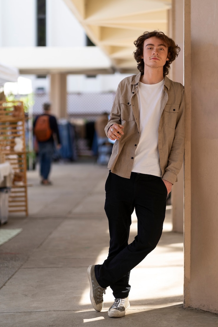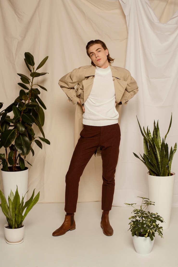 Ношение одинакового цвета с двух сторон тела может визуально увеличить рост. Экспериментируйте с однотонной одеждой casual, особенно серого оттенка, или надевайте темный костюм. Избегайте больших принтов и логотипов; отдавайте предпочтение чистым линиям и минимализму.