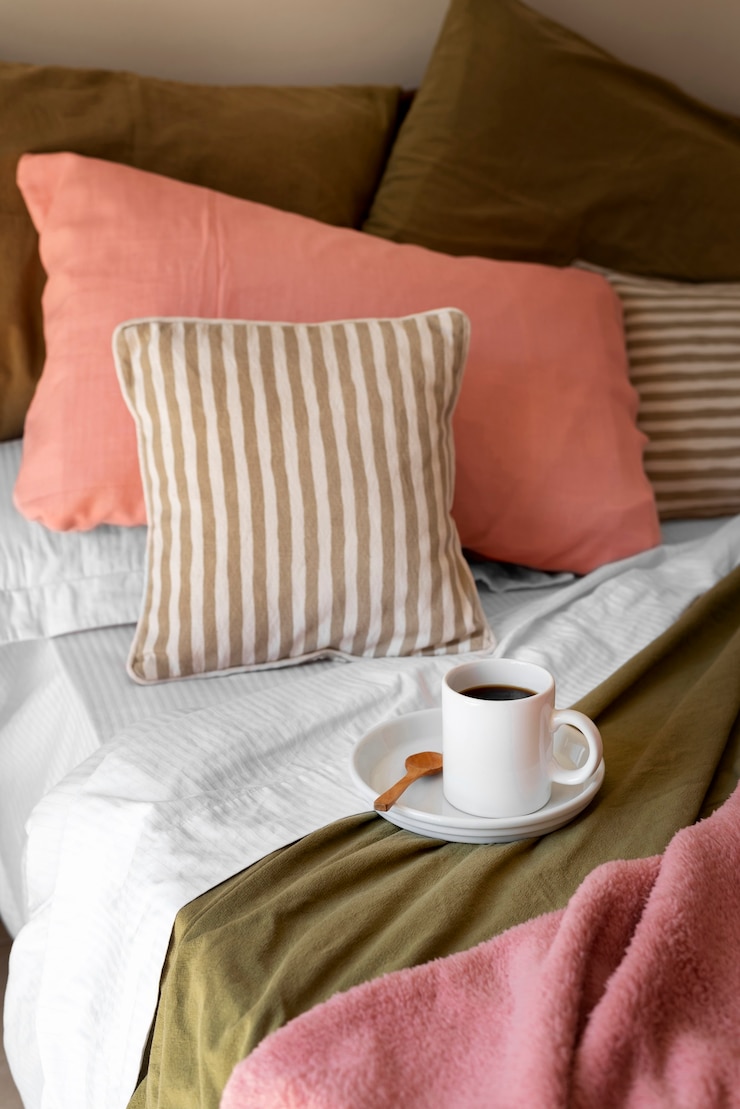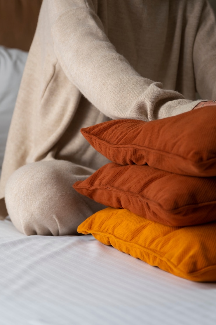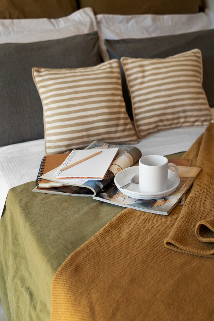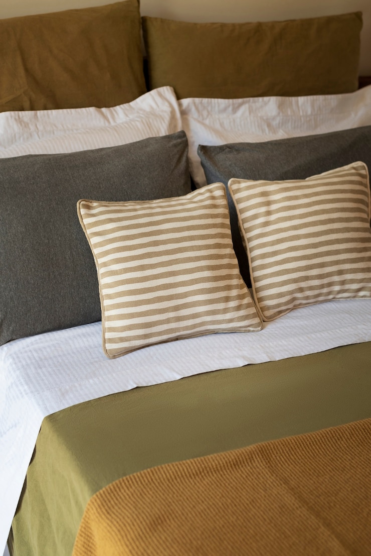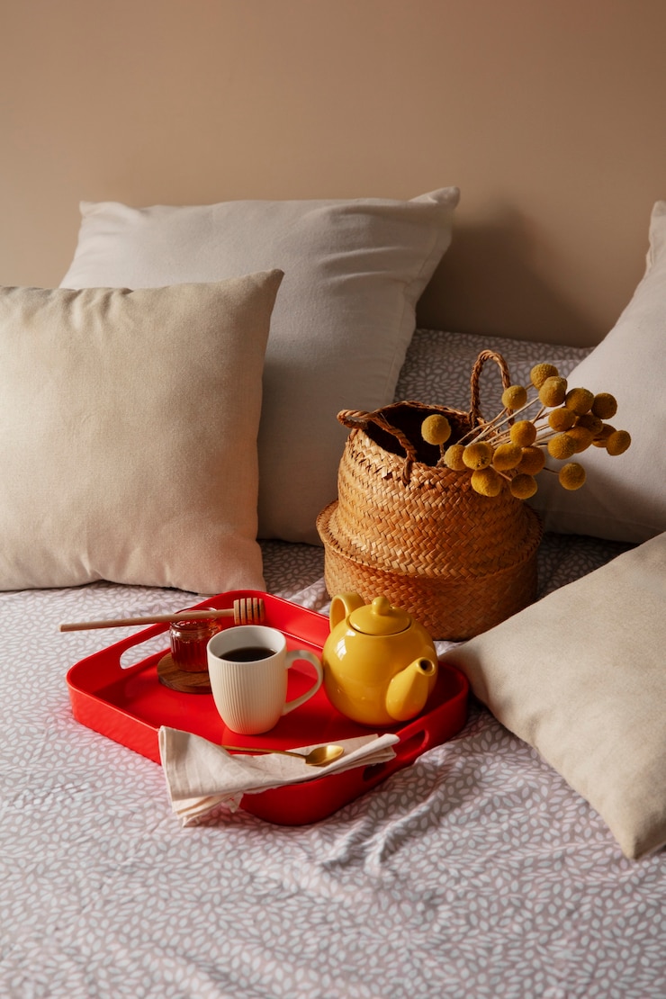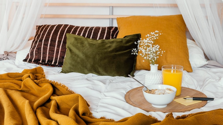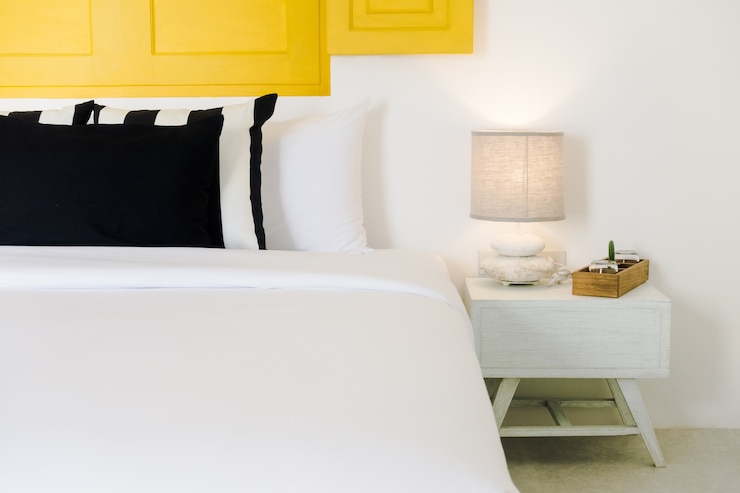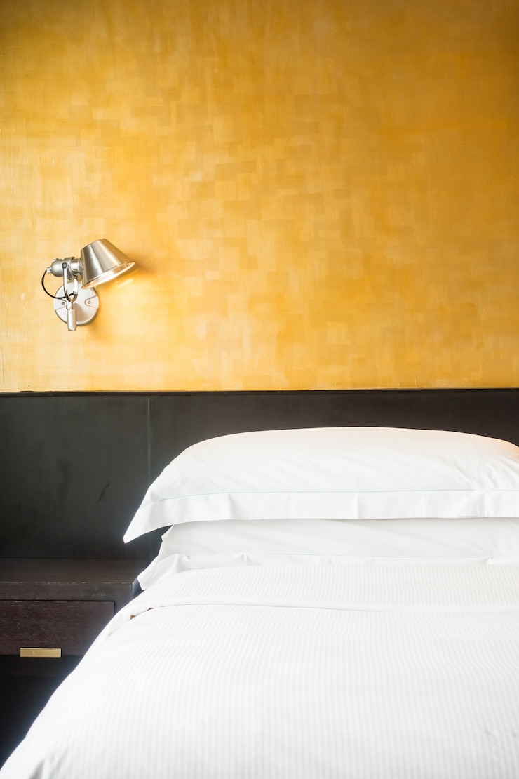 Если бюджет не позволяет купить новую кровать, можно сделать акцент с помощью нового белья. Возьмите однотонный подход: подберите подушки, покрывало и постельное белье одного цвета. Или создайте текстуру и четкость, комбинируя разные оттенки желтого.