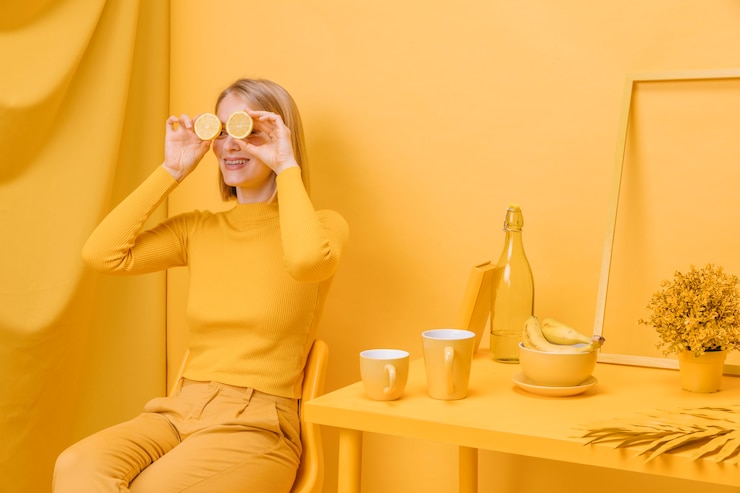 Нейтральные цвета отлично гармонируют с желтым, потому что белый и загар часто имеют одинаковый полутон.